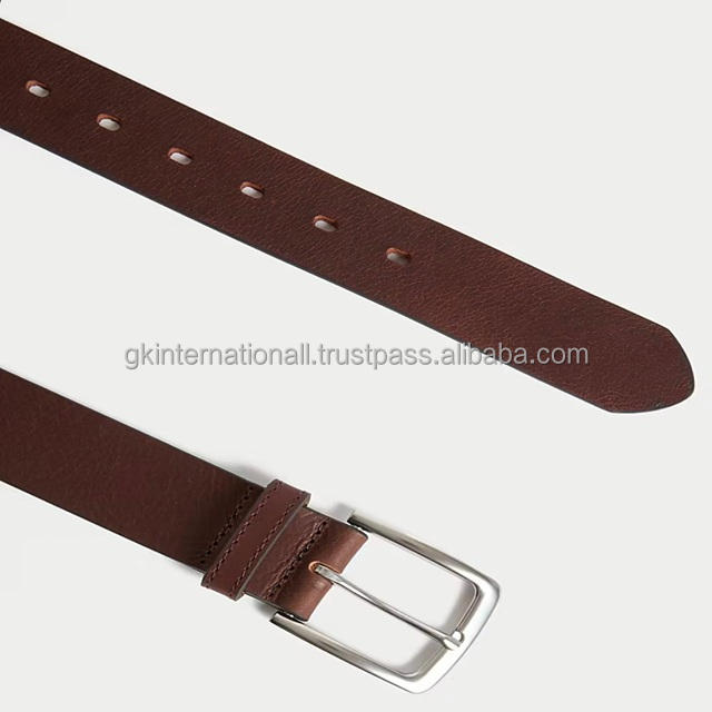 เข็มขัดหนังแท้หัวเข็มขัดสีเงินด้านสำหรับผู้ชายและผู้หญิงแบบลำลองทำมือ