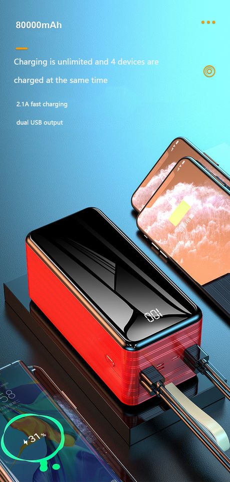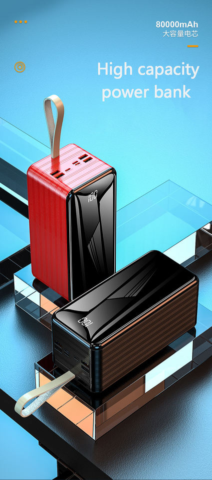 ราคาโรงงานขายส่ง พาวเวอร์แบงค์ความจุสูง 80000 มิลลิแอมป์ 80000mAh พร้อมพอร์ต USB สี่ช่อง พาวเวอร์แบงค์ความจุสูง