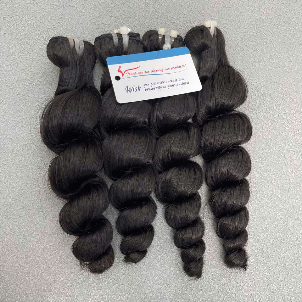 ผมต่อแบบหยักลึกทรงหลวมผมมนุษย์บริสุทธิ์100% สีดำ
