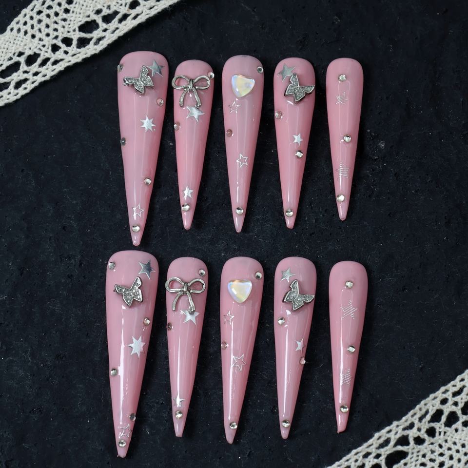 ราคาโรงงานขายส่ง เล็บปลอมอะคริลิคหรูหรา ลายผีเสื้อ 3 มิติ แบบเต็มเล็บ ทรงยาว คุณภาพสูง ทำมือ รูปทรงสี่เหลี่ยมแบบโลงศพ