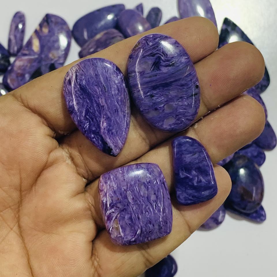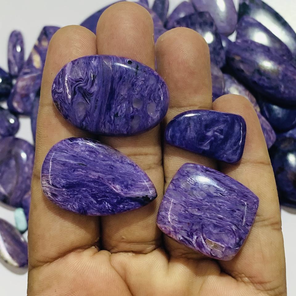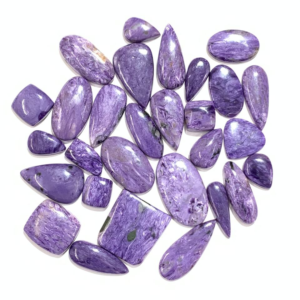 ราคาโรงงานขายส่งพลอยชารอยต์ธรรมชาติแบบหลวม รับรองโดย IGI รูปทรงคาโบชอง ขนาดคละ 3 มม.-20 มม. สำหรับทำเครื่องประดับ