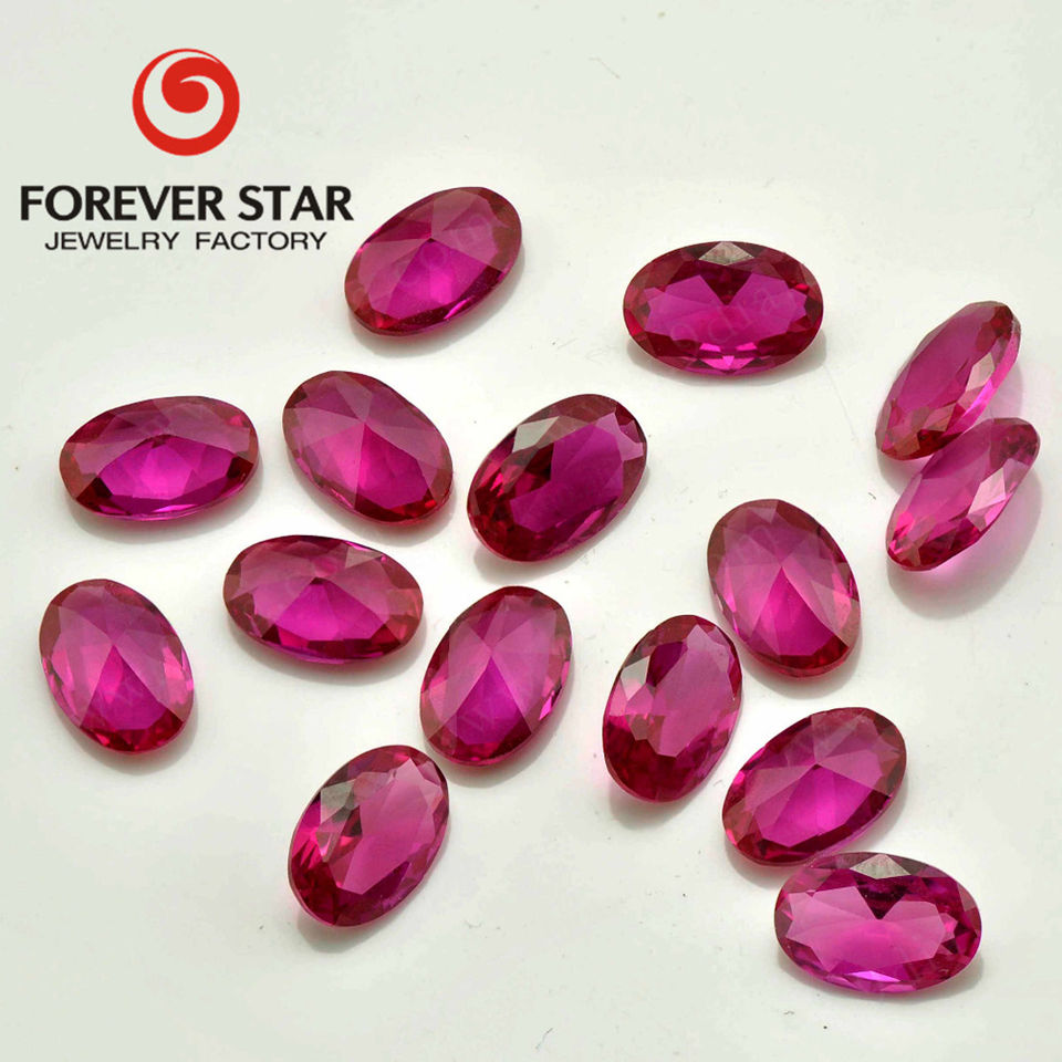 ราคาโรงงานขายส่ง หินทับทิมสังเคราะห์สีแดงรูปไข่ Forever Star ขนาด 6*4 มม. น้ำหนัก 1.68 กะรัต ผ่านกระบวนการอบความร้อน