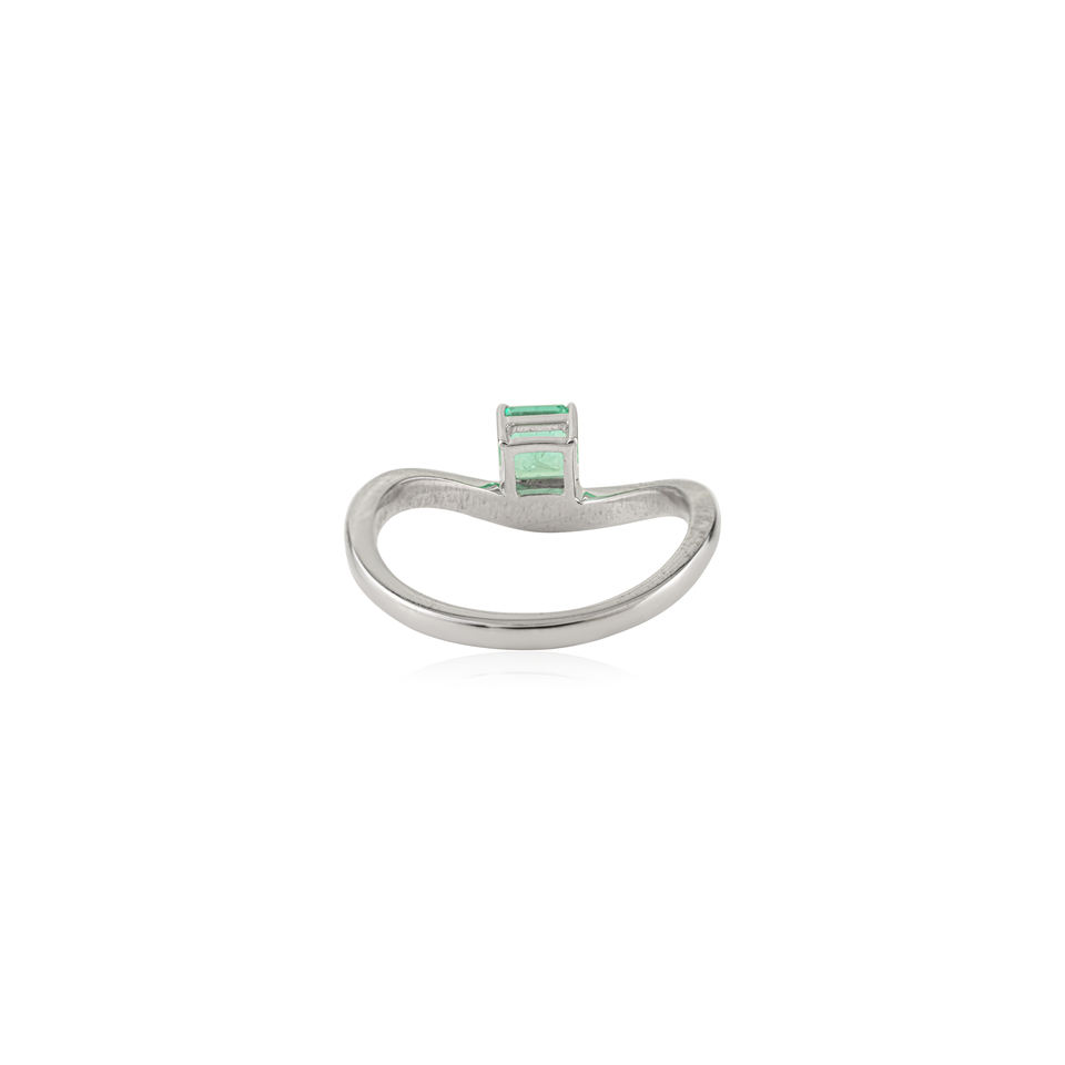 แหวนมรกตแซมเบียทรงเหลี่ยมโค้งเว้า ราคาโรงงานขายส่ง เครื่องประดับมินิมอลสำหรับทุกเพศ เหมาะสำหรับใส่ทุกวัน ทองคำขาวแท้ 14K