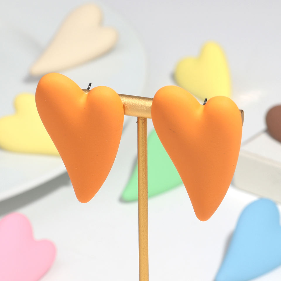 Wholesale Factory Price Trendy Macaron Color Simple Matte Texture Long Peach Heart Sweet Acrylic Resin/Lucite Unisex Party Stud