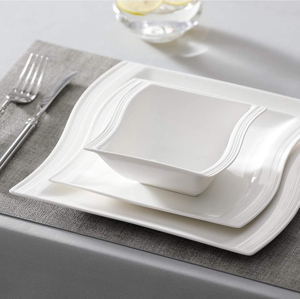 จานอาหารค่ำเซรามิกทรงสี่เหลี่ยมจานอาหารสำหรับจัดเลี้ยงสำหรับร้านอาหารโรงแรม