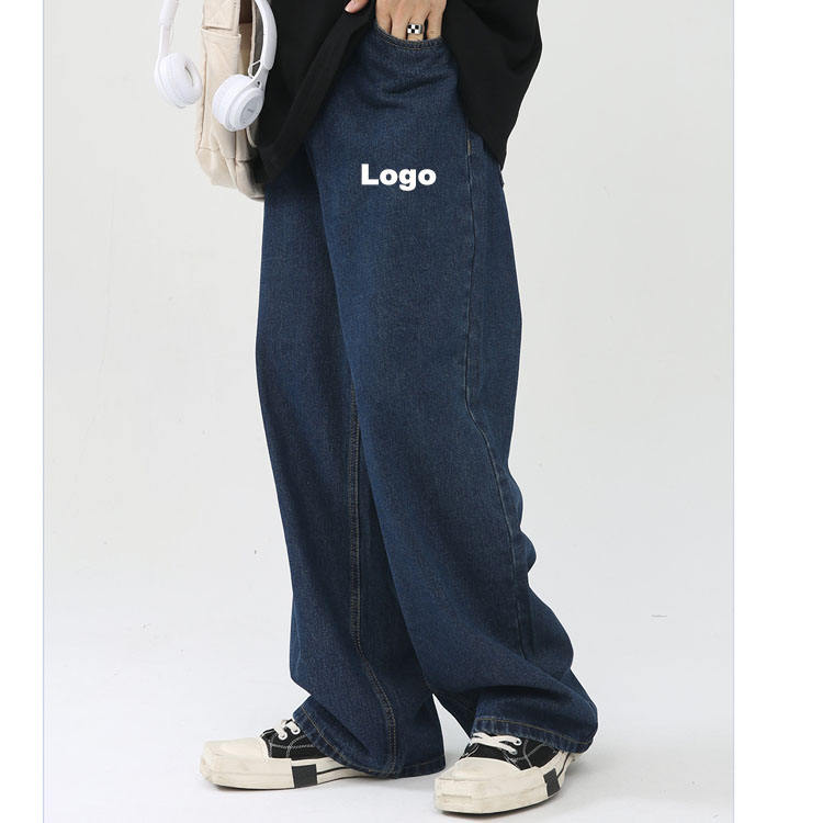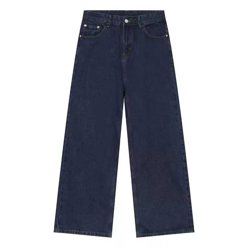 กางเกงยีนส์ทรงแบ็กกี้สีน้ำเงินเข้มสำหรับผู้ชายกางเกงยีนส์แฟชั่นสตรีทแฟชั่นสีฟ้าเข้ม