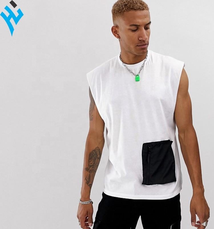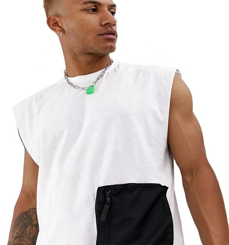 Wholesale Factory Supply Mens Drop Armholes O Neck Pocket with Zipper Design White Vest