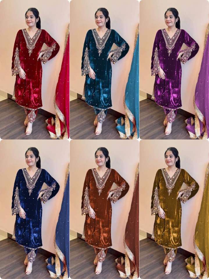 Product Name:Viscose Velvet Sequence Embroidery Top Palazzo And Dupatta