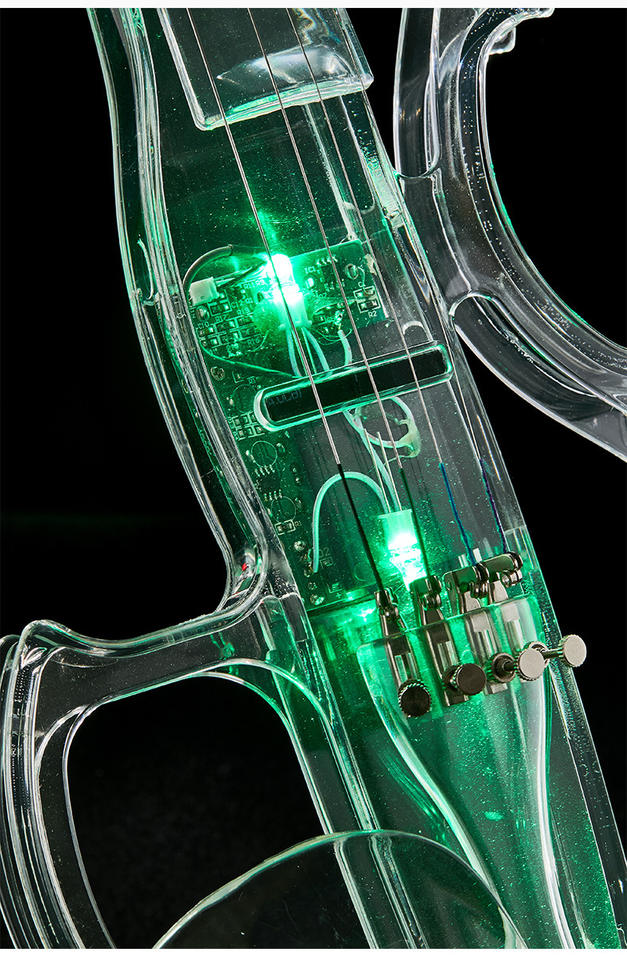 ไวโอลินไฟฟ้าโปร่งใสสำหรับการแสดงบนเวทีและการแสดงเดี่ยวจากโรงงานขายส่ง ใช้งานร่วมกับเครื่องขยายเสียงได้ง่าย