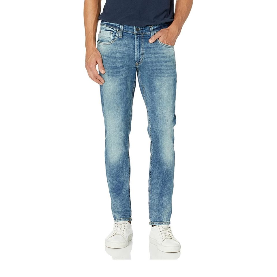 กางเกงยีนส์ผ้าฝ้ายสแปนเด็กซ์ขายาวสำหรับผู้ชายกางเกงยีนส์แบบปกติขาดจากโรงงานขายส่ง
