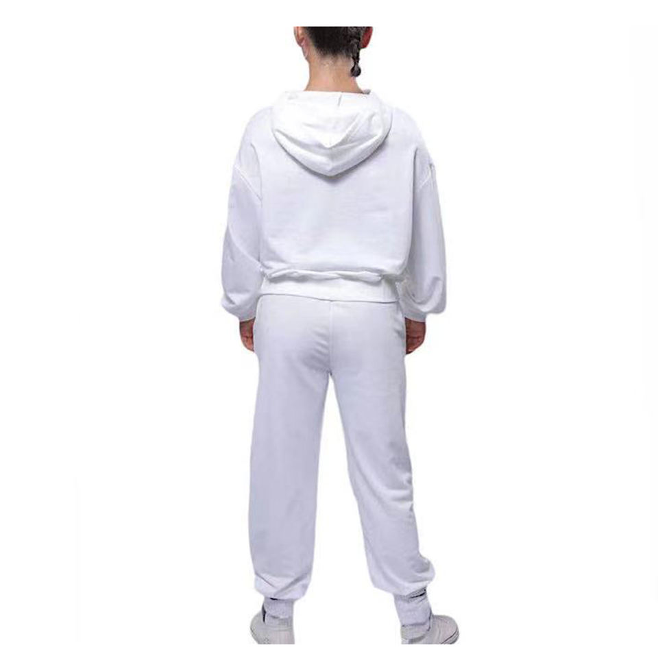 เสื้อฮู้ดชายและหญิงซิปสีจางพิมพ์ลายโลโก้ประดับเพชร