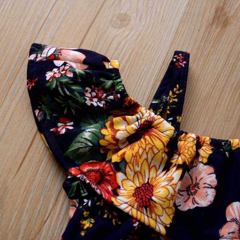 ชื่อ:ชุดเดรสสายเดี่ยวผ้าซาตินลายดอกไม้สำหรับเด็กผู้หญิง