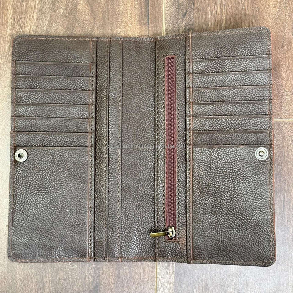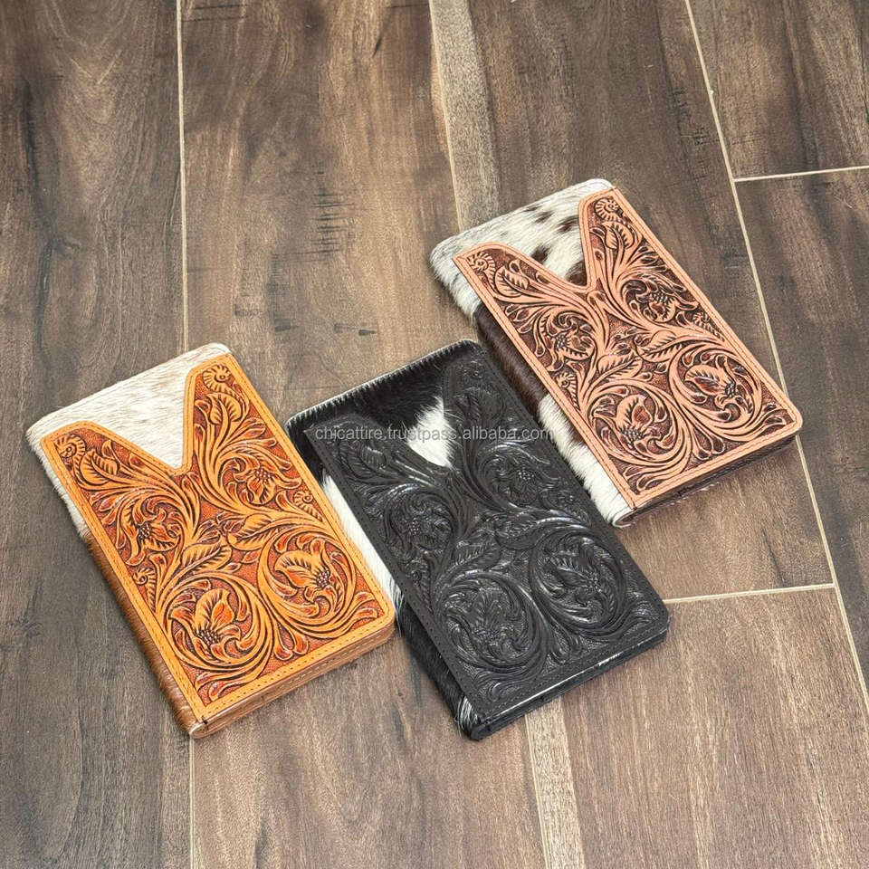 Hand Tooled Cowhide Leather Long Bifold Wallets