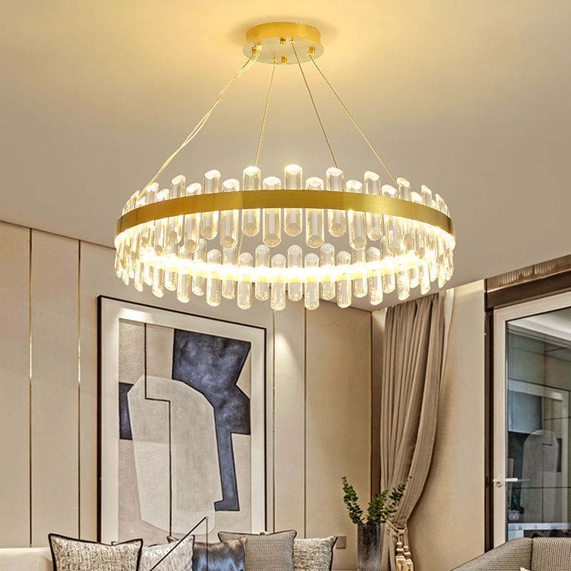 โคมไฟระย้าคริสตัลวงแหวน LED วงกลมวงเดียวสำหรับร้านอาหารวิลล่า