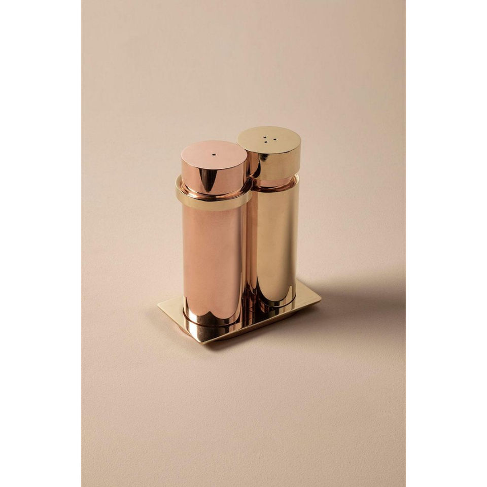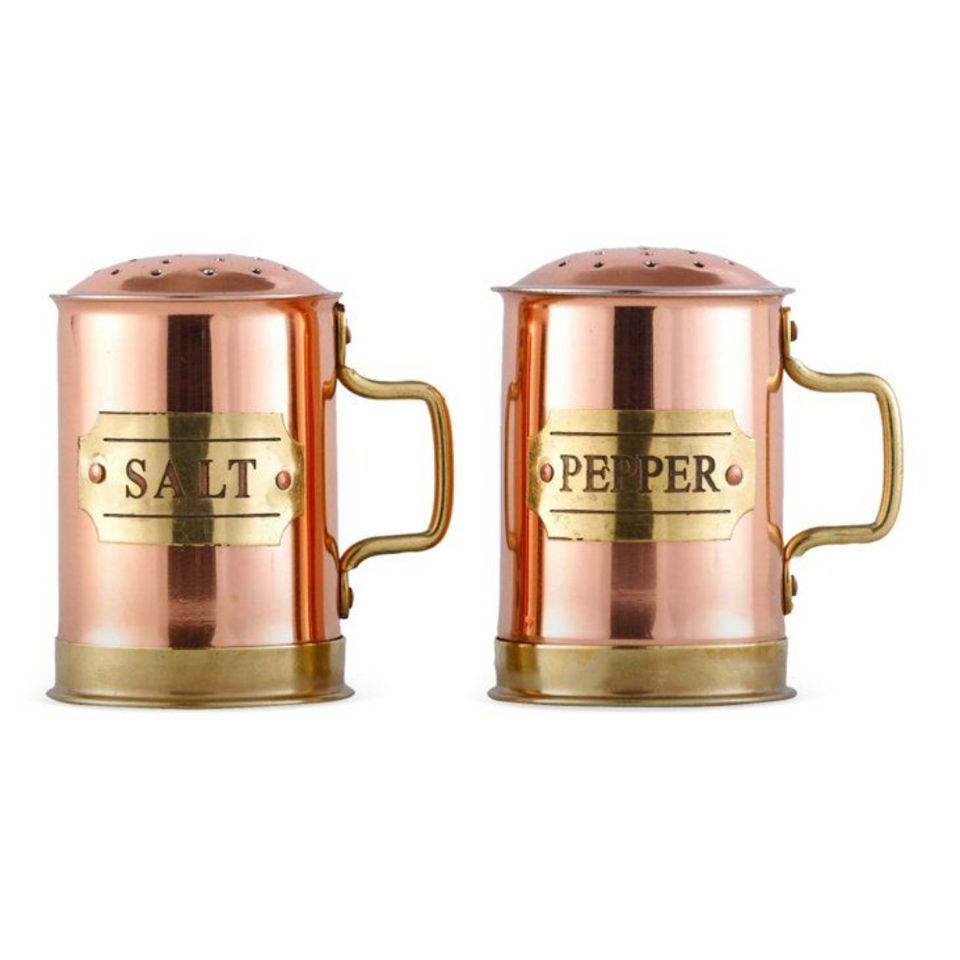 หม้อเครื่องปรุงบนโต๊ะรับประทานอาหารแฟนซีทำจากทองแดงบดและเหยือกพริกไทยเหมาะสำหรับใช้บนโต๊ะอาหารในโรงแรม