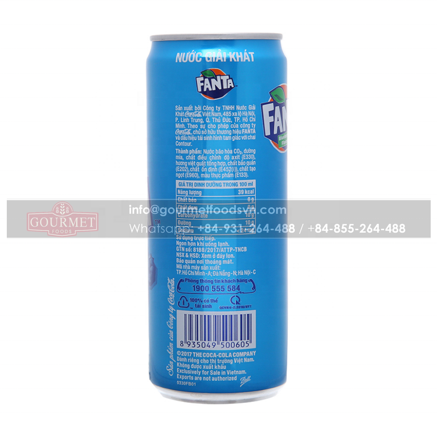 ชื่อผลิตภัณฑ์:น้ำอัดลมบลูเบอร์รี่แฟนต้า320มล. x 24