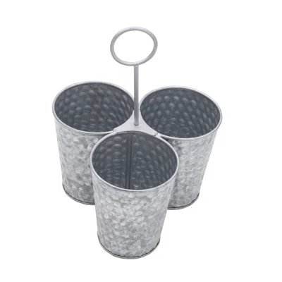 ตะกร้าใส่ช้อนส้อมเหล็กชุบสังกะสีแบบขายส่ง พร้อมหูจับ 6 ช่อง สำหรับจัดระเบียบอุปกรณ์ครัวในบ้าน