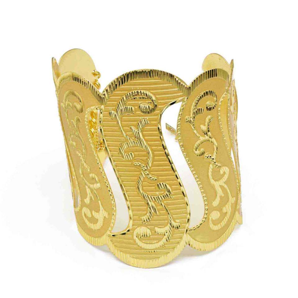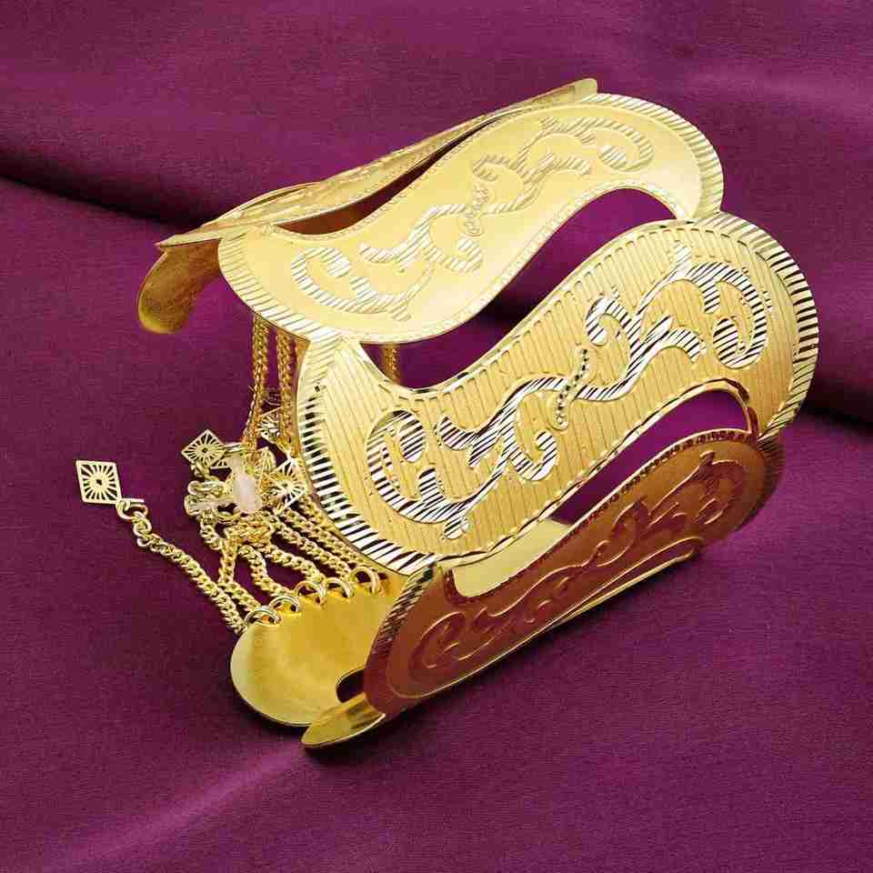 สร้อยข้อมือมัดมือกว้างชุบทอง14K 18K 24K พร้อมโซ่ห้อยหลายอันและการออกแบบแกะสลักที่ประณีต