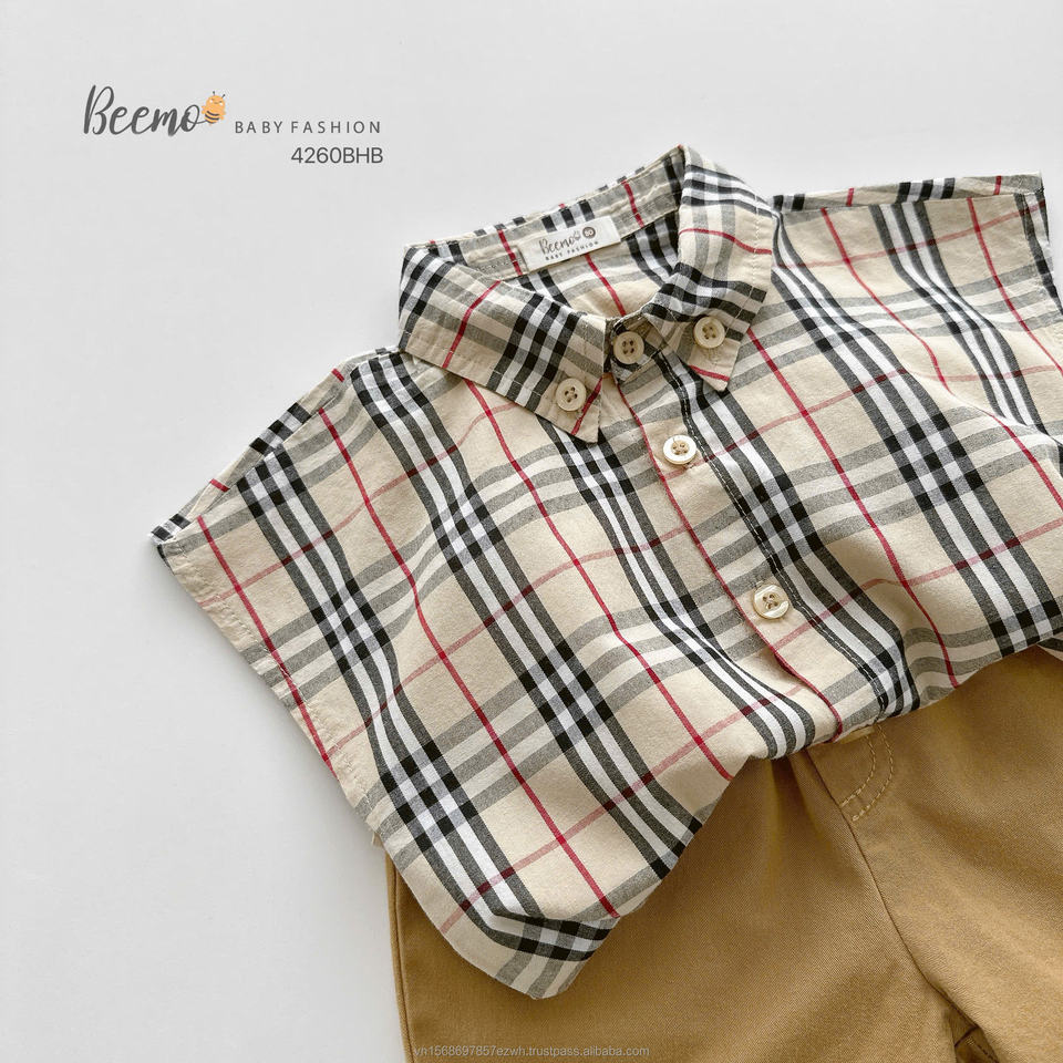 ชุดเสื้อผ้าเด็ก2ชิ้นเสื้อแขนสั้นลายสก็อตสำหรับเด็กผู้ชายชุดเสื้อผ้าลำลองบูติกแฟชั่นสำหรับเด็กวัยหัดเดิน