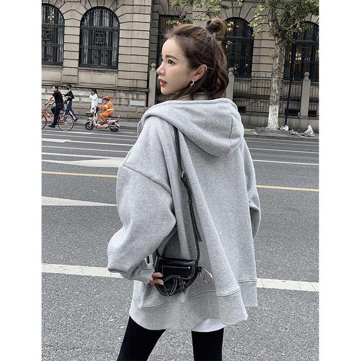 เสื้อฮู้ดแฟชั่นฤดูหนาวสำหรับผู้หญิง แขนยาว ความยาวปกติ พร้อมโลโก้ปักลาย ขายส่ง