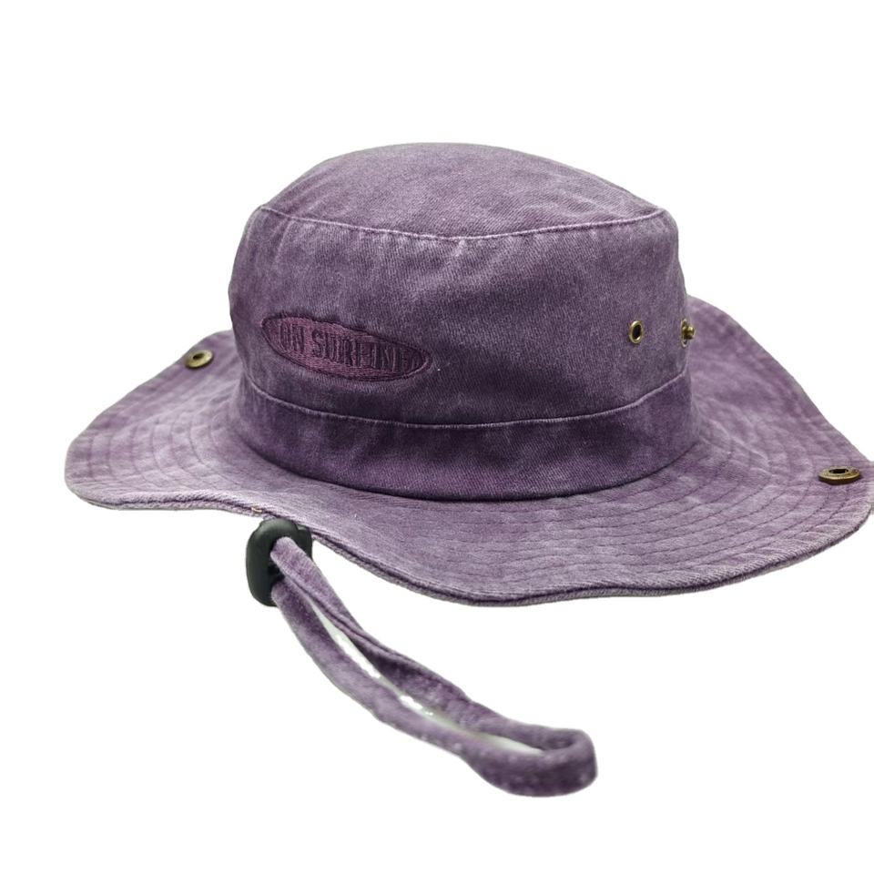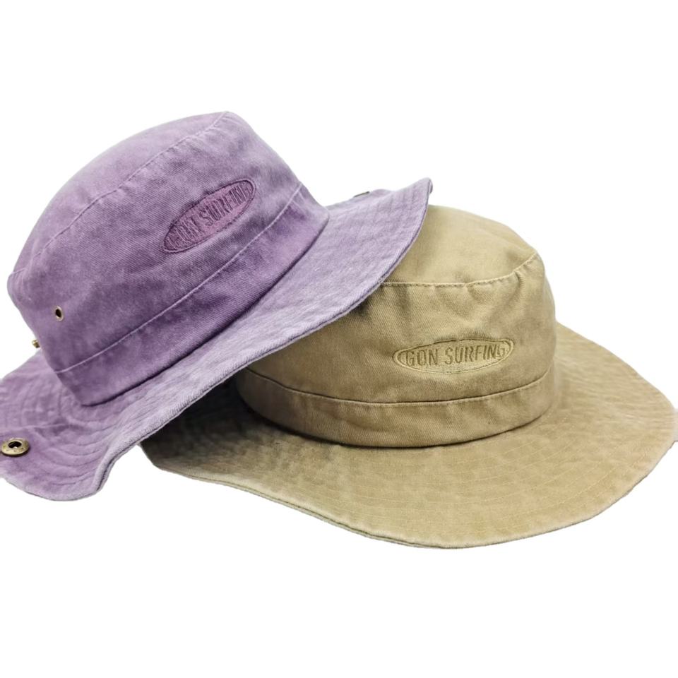 หมวกทรงถังกว้างผ้าฝ้ายฟอกสีวินเทจปักลายสำหรับผู้ชายผู้หญิงแฟชั่นตามสั่งฤดูร้อน