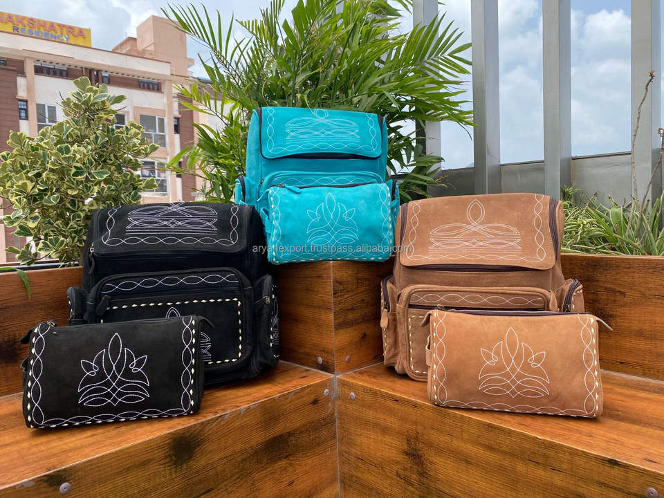 Genuine Suede Leather Backpacks & Jewelry Case Combo set