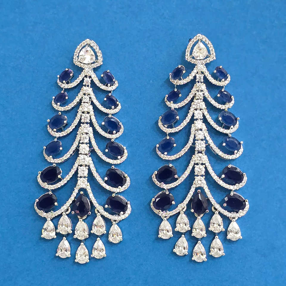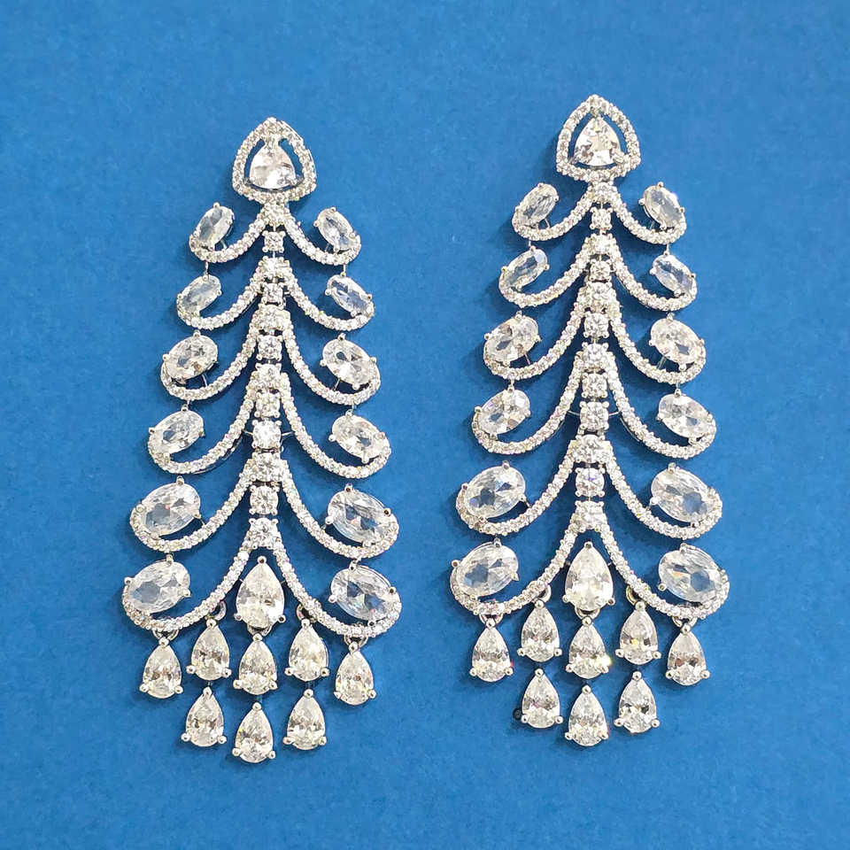 ต่างหู CZ แฟชั่นห้อยคลาสสิกชุบโรเดียมสินค้าขายดี