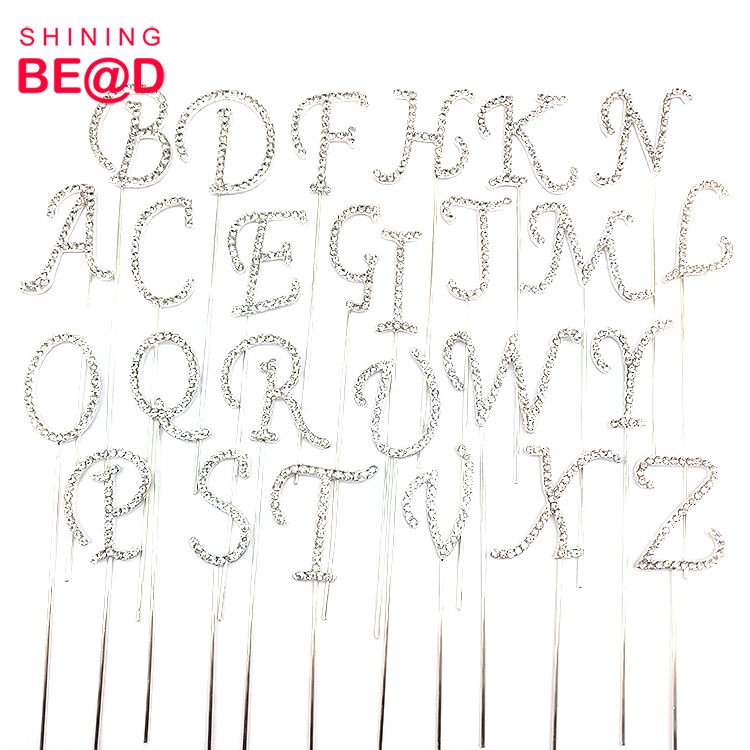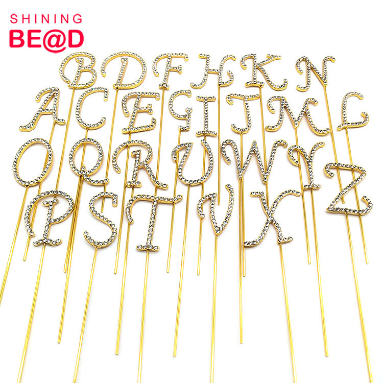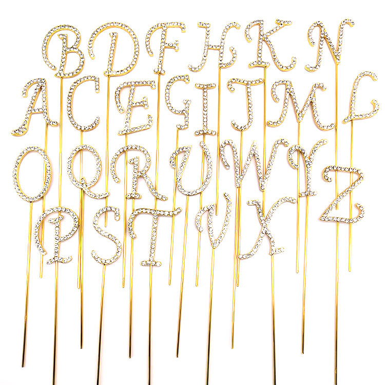 ขายส่งแฟชั่นตัวอักษรภาษาอังกฤษA-ZโลหะผสมคริสตัลR Hinestoneเค้กTopperสําหรับงานแต่งงานวันเกิดขนมหวานตกแต่งเค้ก