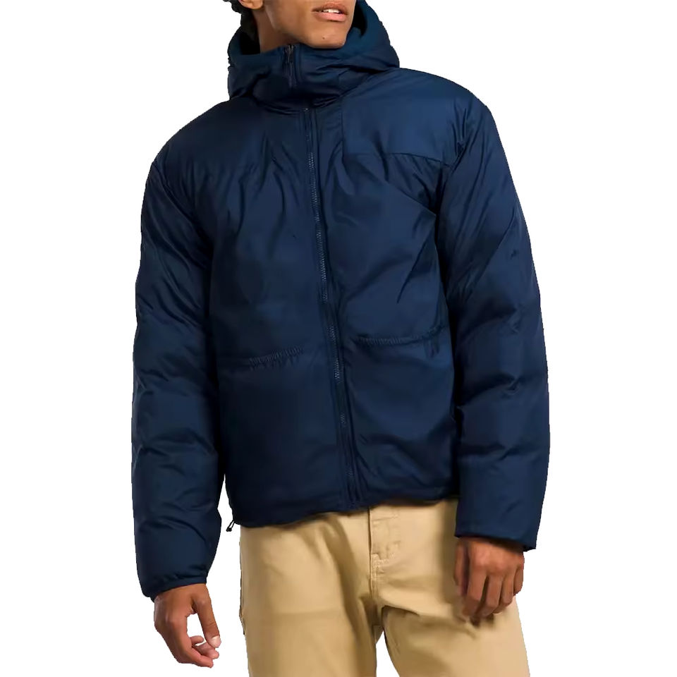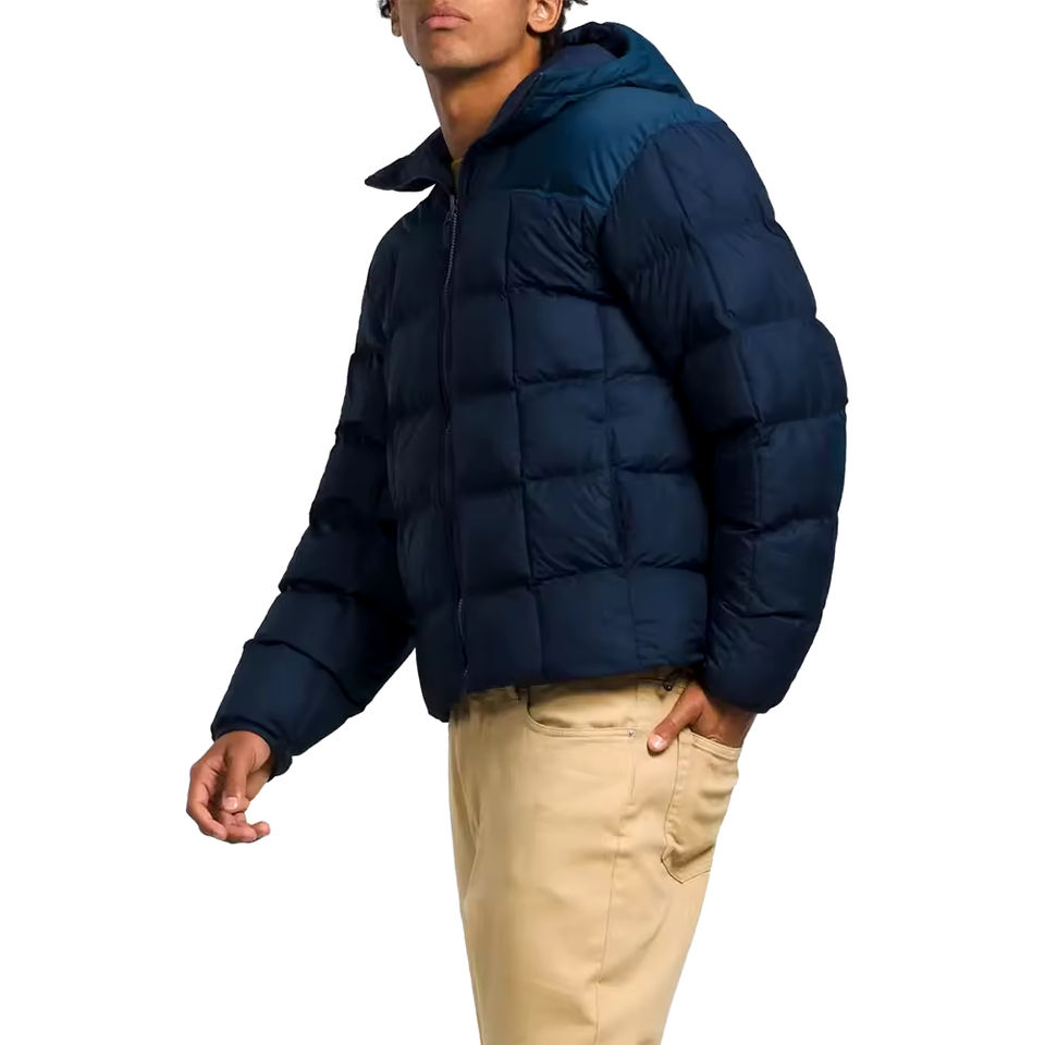 เสื้อโค้ทกันหนาวขนห่านมีฮู้ดสำหรับผู้ชายแจ็กเก็ตทรงพองออกแบบโลโก้ได้ตามต้องการ