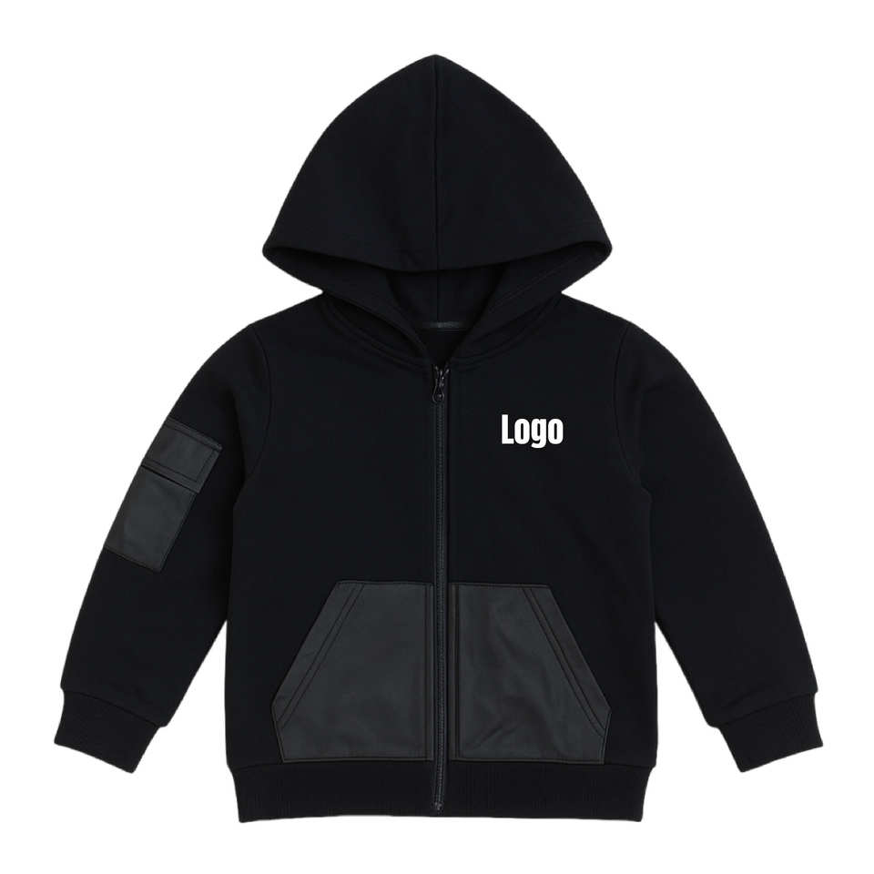 เสื้อมีฮู้ดแบบมีซิปสำหรับเด็กผู้ชายกางเกงขนแกะเทอร์รี่2ชิ้น