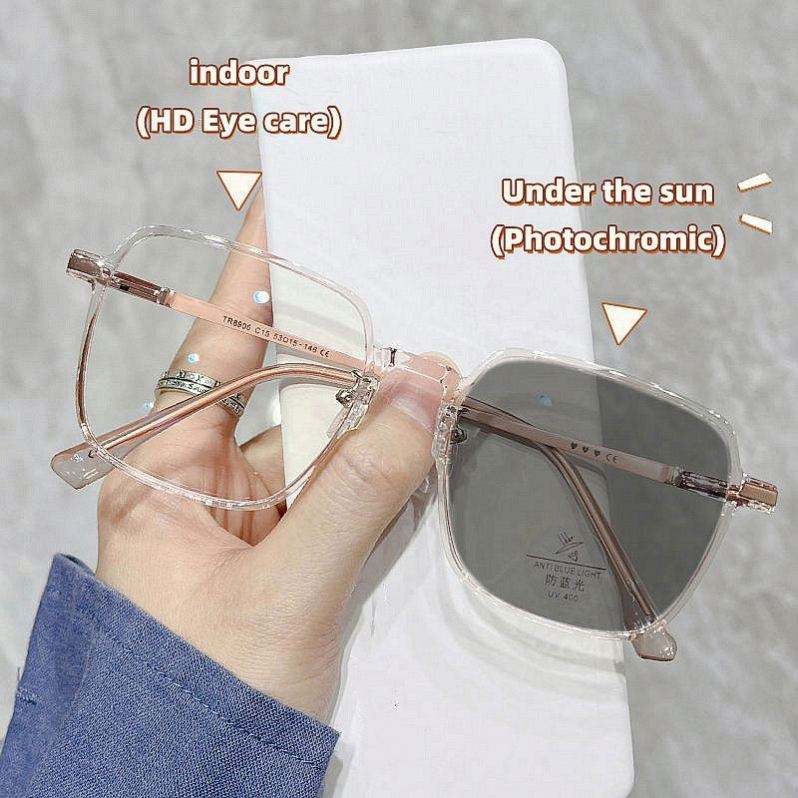 แว่นตาแฟชั่นขายส่ง เปลี่ยนสีได้ ป้องกันแสงสีฟ้า กรอบใหญ่ เลนส์เปลี่ยนสีอัตโนมัติ สำหรับผู้หญิง