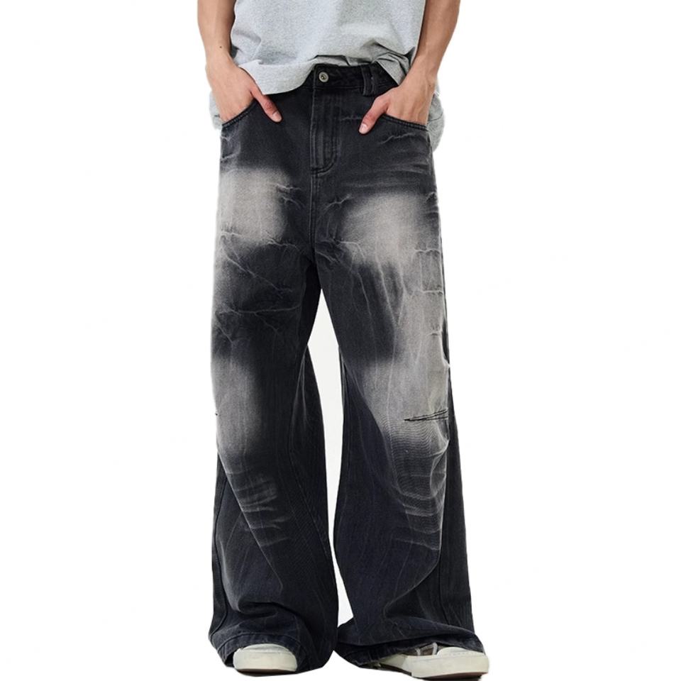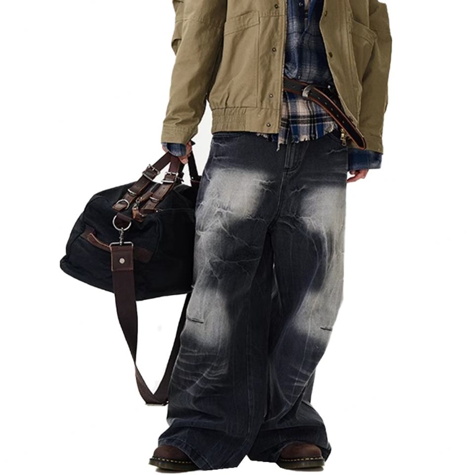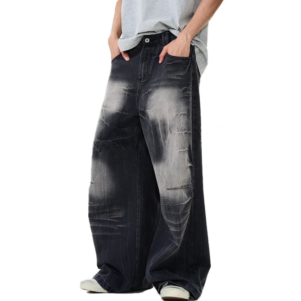 กางเกงยีนส์แฟชั่นขายส่งทรงหลวมขากว้างแบบล้างสีสไตล์เรโทรสำหรับผู้ชาย กางเกงแฟชั่นสตรีทโอเวอร์ไซส์สำหรับผู้ชาย