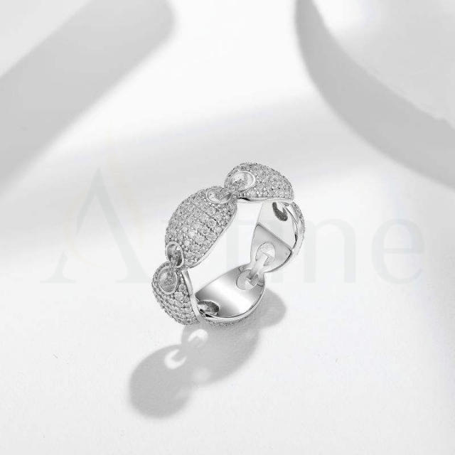 Wholesale Fashion Man Rings Jewelry Platinum Plating 925 Silver Diamond Brilliant Cut Hiphop Mariner Link Ring for Men Women