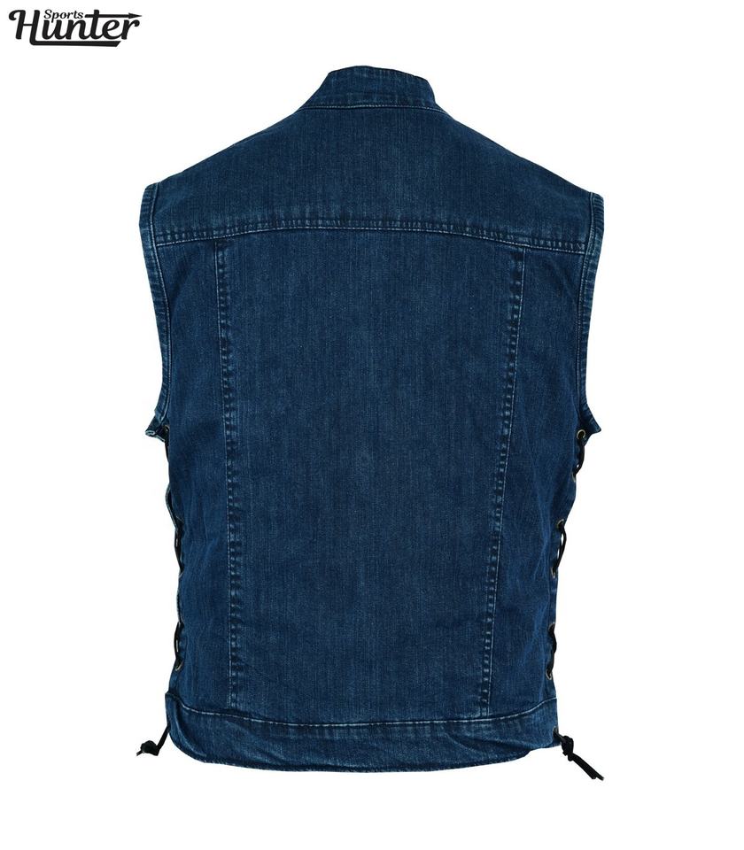 ขายส่งแฟชั่นผู้ชายเดนิมเสื้อกั๊กการออกแบบที่กำหนดเองที่มีคุณภาพสูงผู้ชายเดนิมรถมอเตอร์ไซด์เสื้อกั๊ก2022