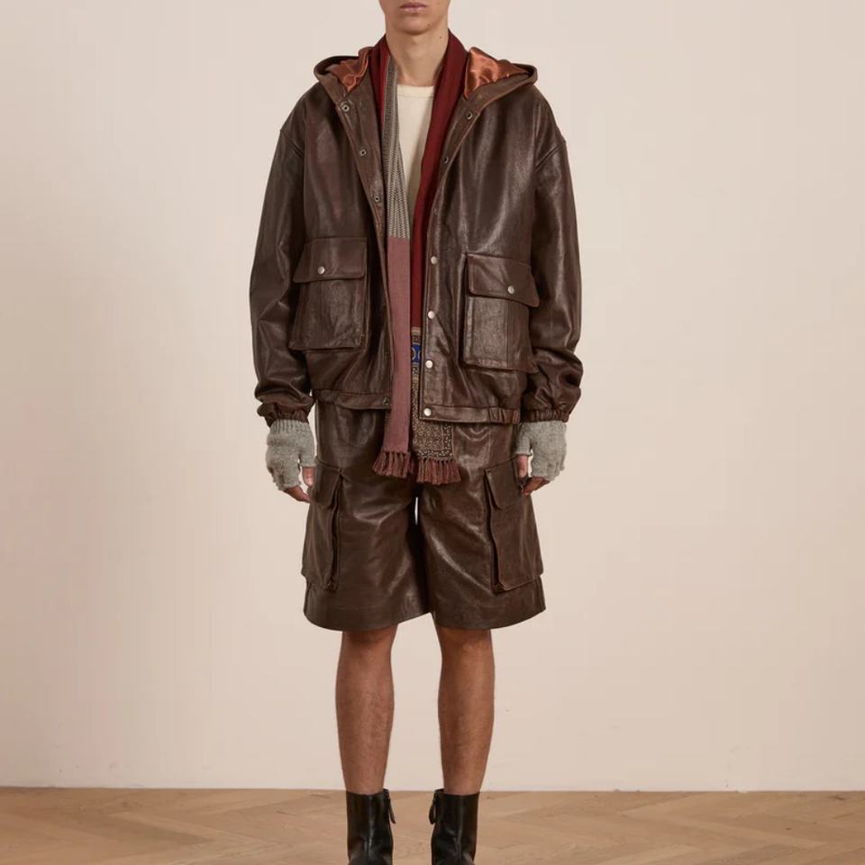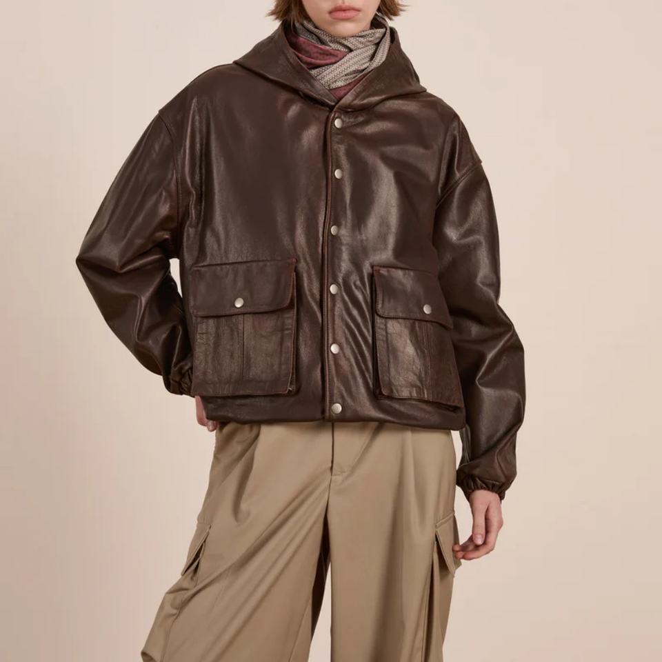 เสื้อแจ็คเก็ตหนัง PU คุณภาพสูง น้ำหนักปานกลาง สไตล์ลำลอง แต่งดีเทลขาดๆ แบบโอเวอร์ไซส์ สำหรับผู้ชาย ขายส่ง