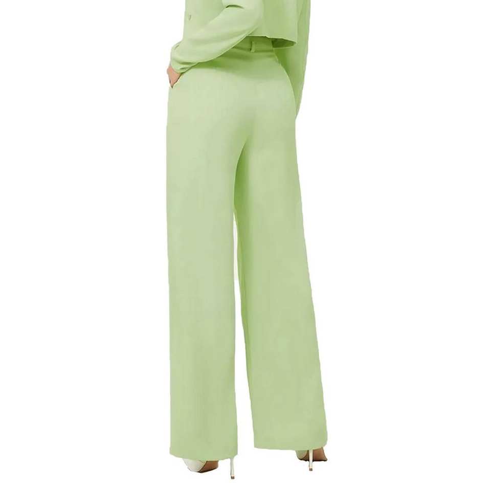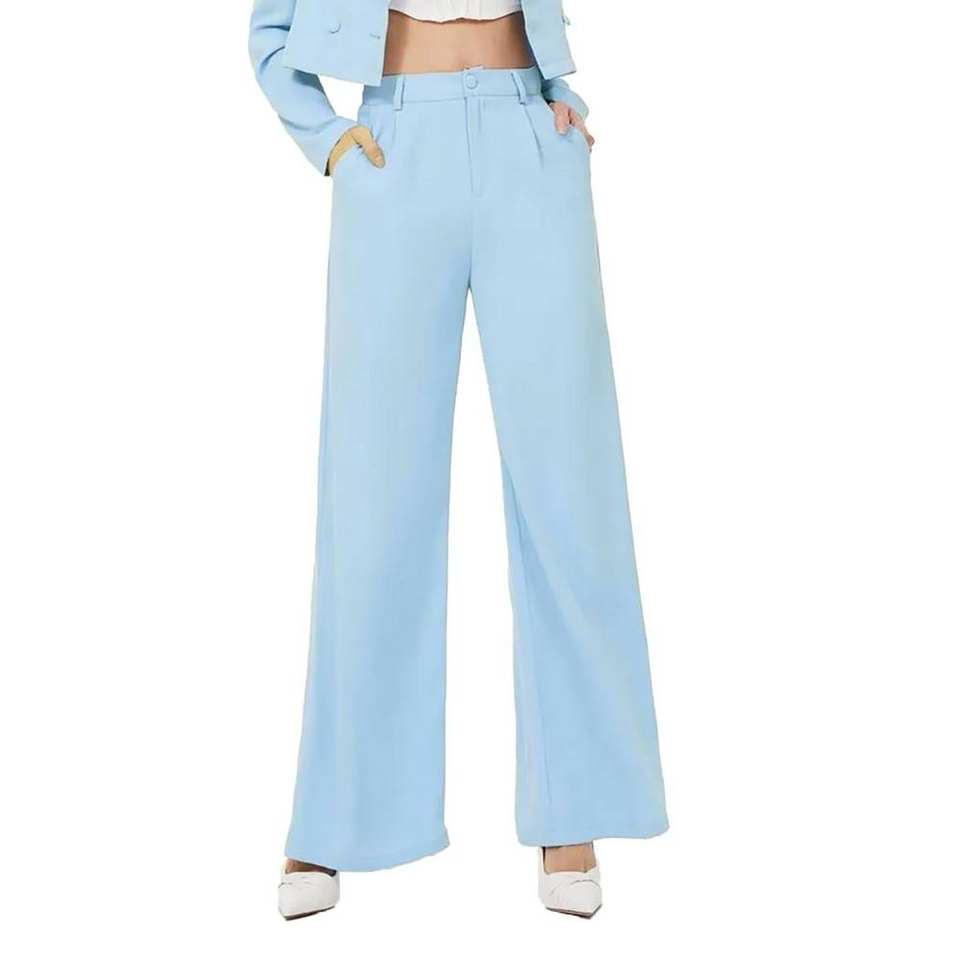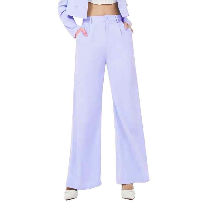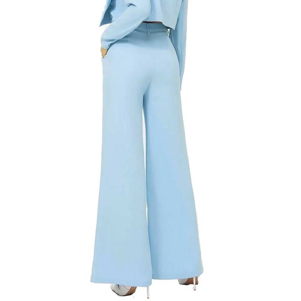 กางเกงขาบานสำหรับผู้หญิงกางเกงผ้าฝ้ายและโพลีเอสเตอร์เอวกลางสีทึบแฟชั่น