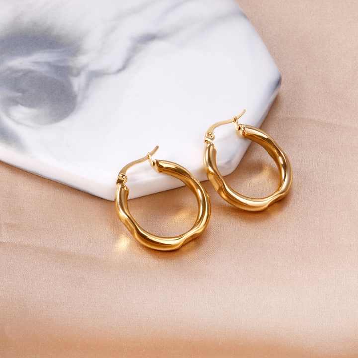 ต่างหูห่วงสแตนเลสสตีลสไตล์มินิมอลแฟชั่นขายส่ง ชุบทอง 18K เครื่องประดับกันน้ำ ต่างหูทรงเรขาคณิตสำหรับผู้หญิง