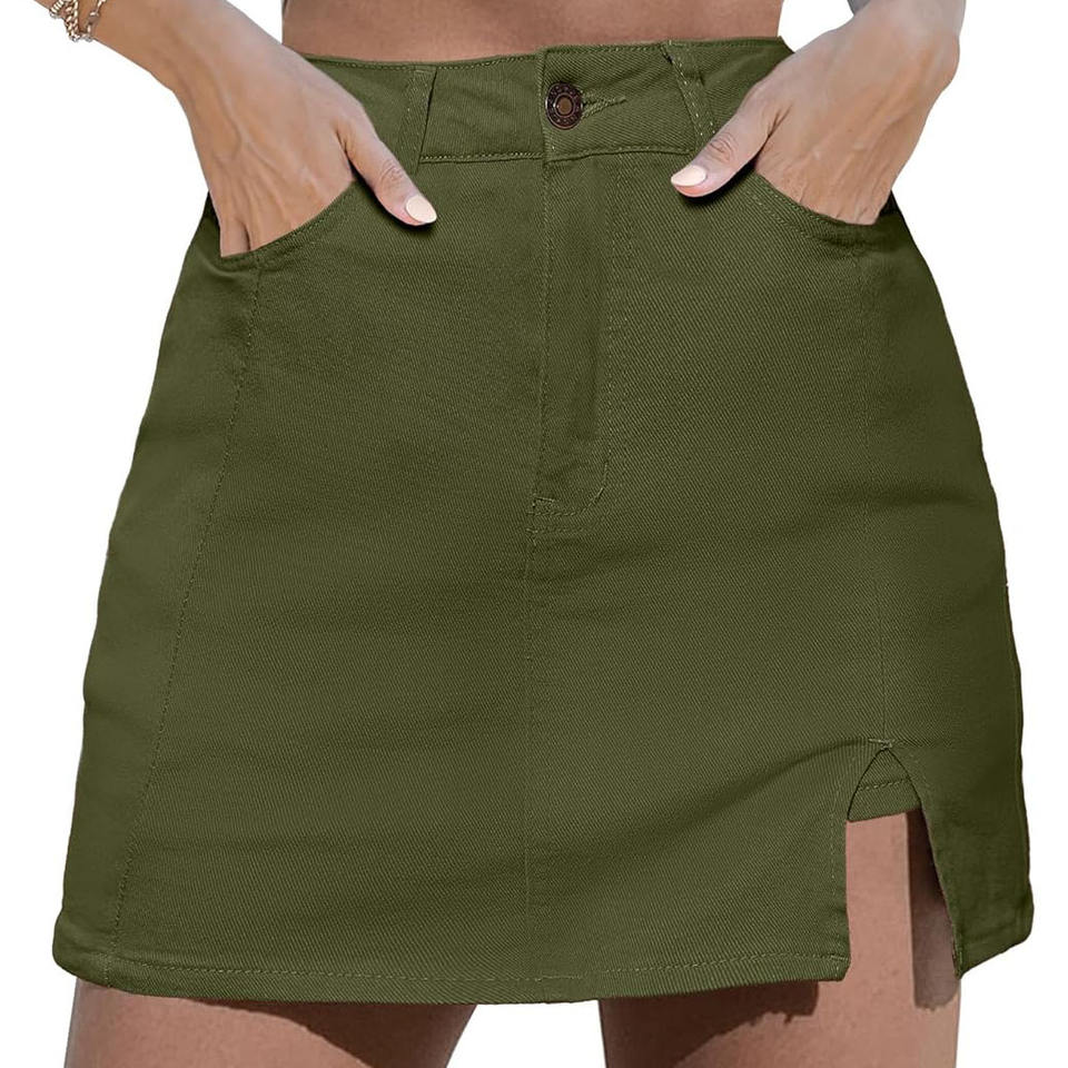 กระโปรงยีนส์สั้นสีน้ำเงินดีไซน์ใหม่สำหรับผู้หญิง ขายส่งแฟชั่น กระโปรงยีนส์ขาสั้นสไตล์คาร์โก้สำหรับผู้หญิง