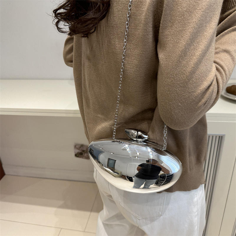 กระเป๋าคลัทช์แฟชั่นสำหรับผู้หญิงกระเป๋าสะพายข้างอะคริลิครูปผลไม้สีเงินสีทอง