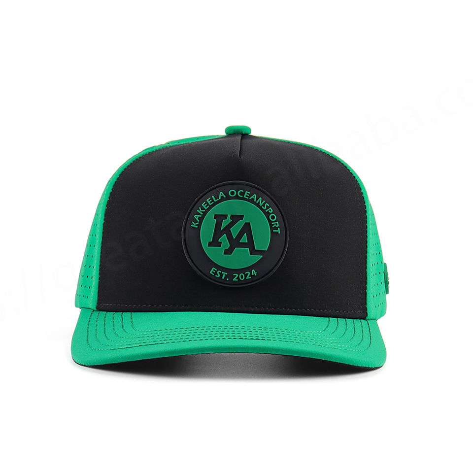 Wholesale Fashion Perforated Golf Hat Two Tone Design Cap Custom Rubber Patch Logo Baseball Cap 100% Polyester Breathable