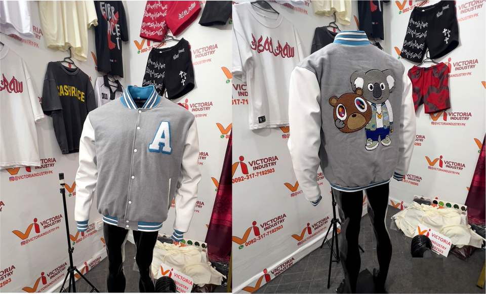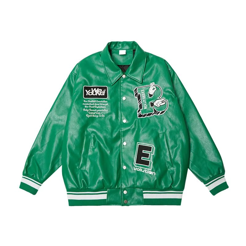 แจ็คเก็ตวาร์ซิตี้แฟชั่นแบบเรียบง่ายสำหรับทุกเพศ ขายส่ง แจ็คเก็ตบอมเบอร์ผ้าซาตินสีดำปักลายด้านหน้า ลายปะติดแบบต่างๆ