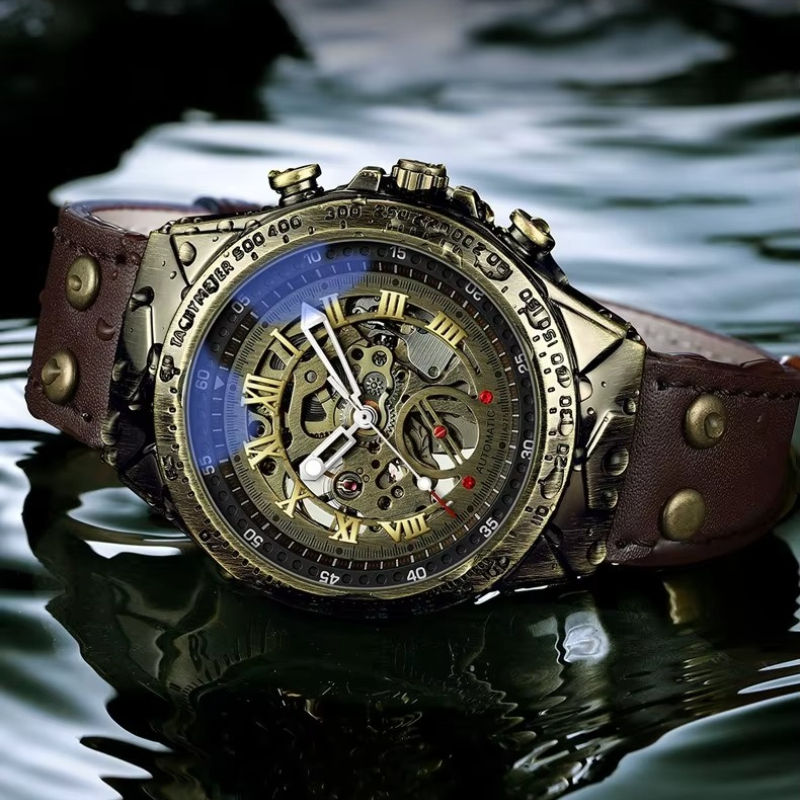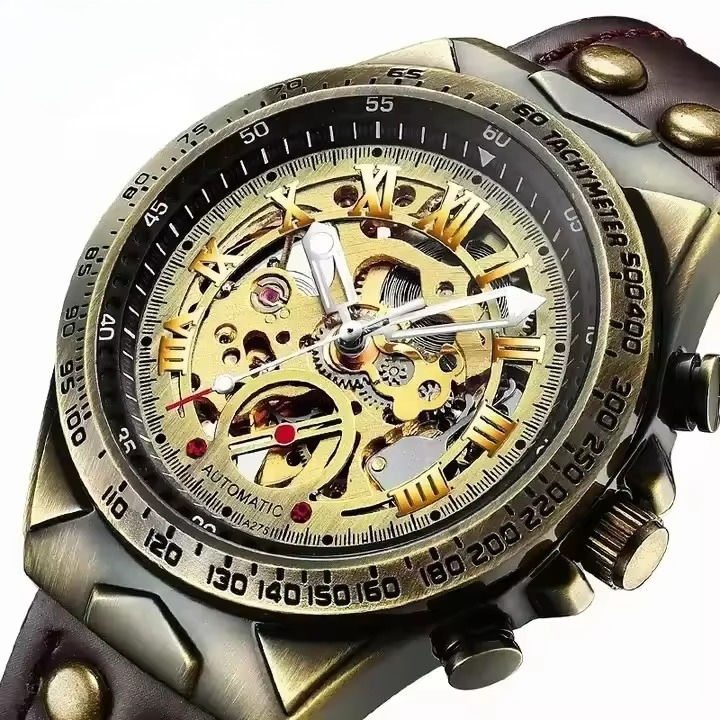 นาฬิกาข้อมือผู้ชาย ระบบออโตเมติก ดีไซน์ย้อนยุค แฟชั่นขายส่ง กันน้ำ เรืองแสง โปร่งใส โครงกระดูก