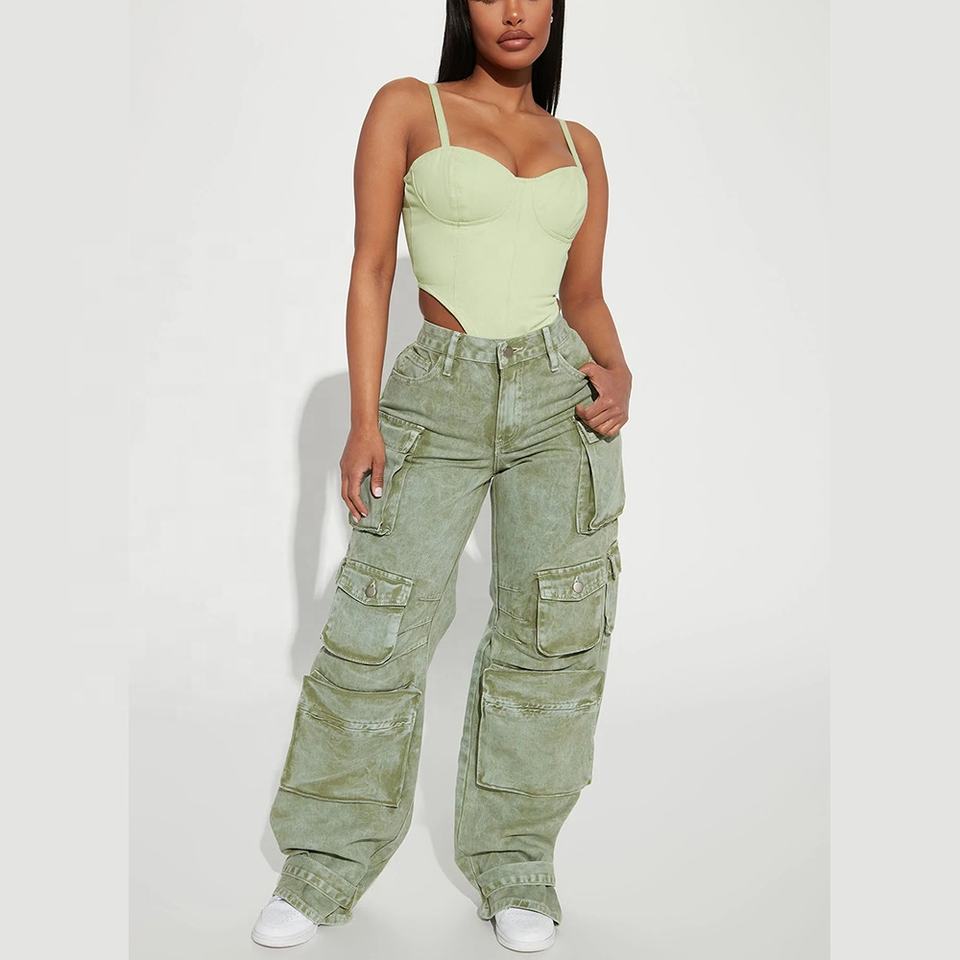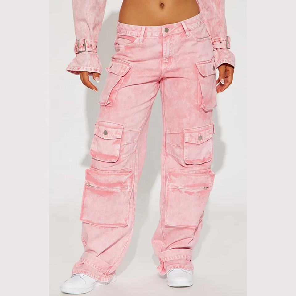 กางเกงยีนส์มีกระเป๋าด้านข้างสำหรับผู้หญิงกางเกงยีนส์2026