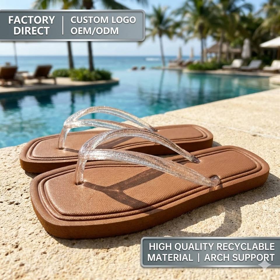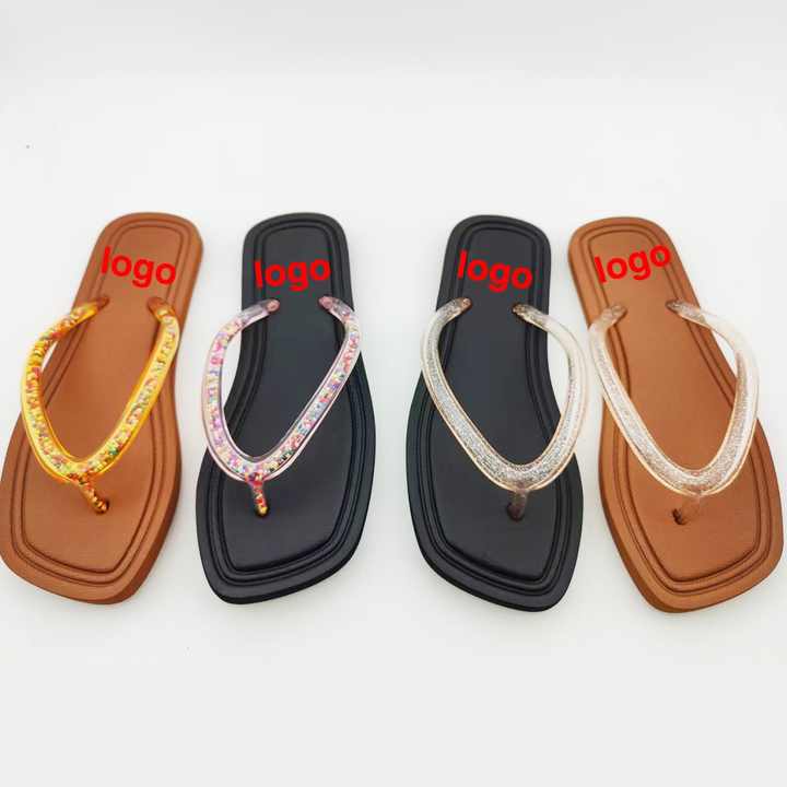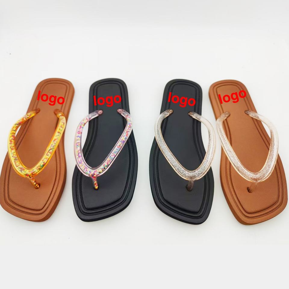 Wholesale Fashion Square Toe Women's Flip Flops Glitter Transparent Jelly Straps Arch Support Sandals Custom Logo Factory OEM