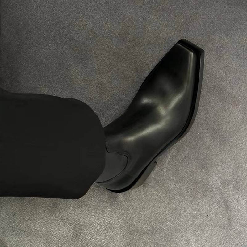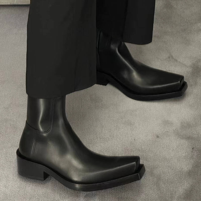 รองเท้าบูทข้อสั้นทรงเหลี่ยม ส้นหนา แฟชั่นขายส่งสำหรับผู้ชายและผู้หญิง หนังแท้ ใส่ได้ทั้งชายและหญิง เหมาะสำหรับฤดูหนาว