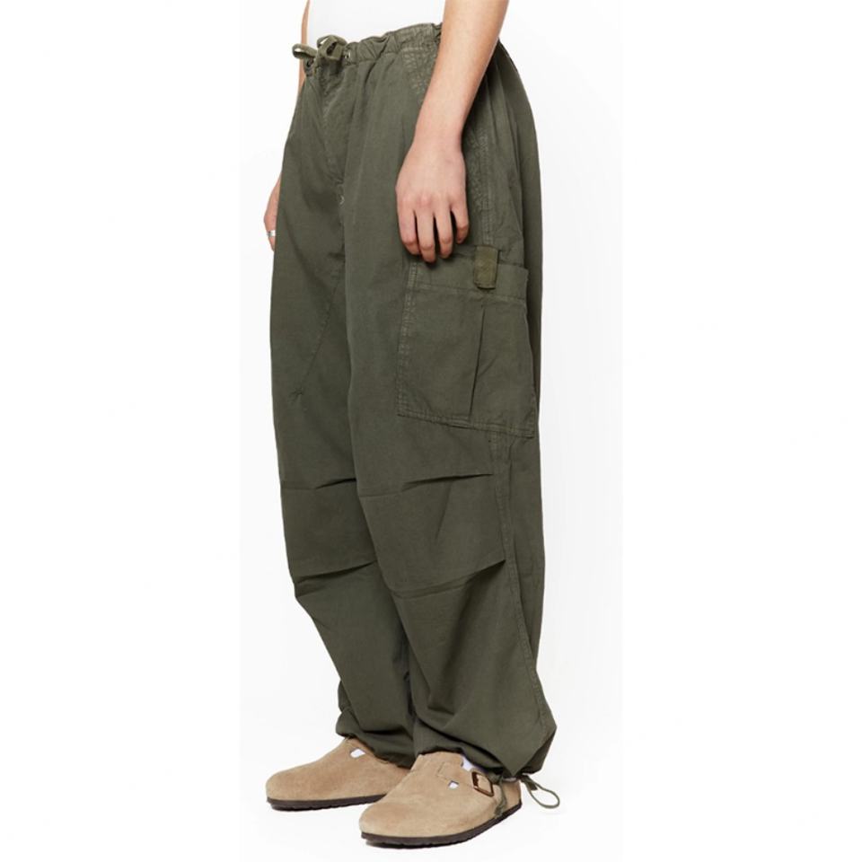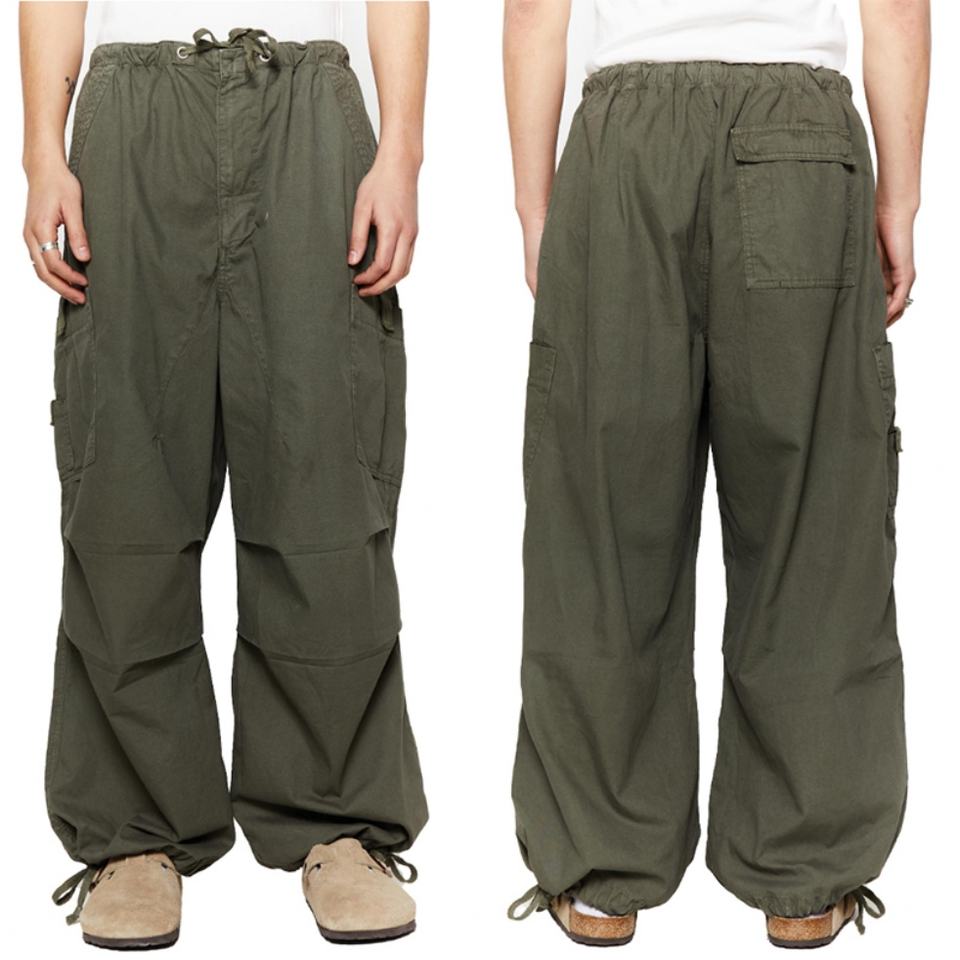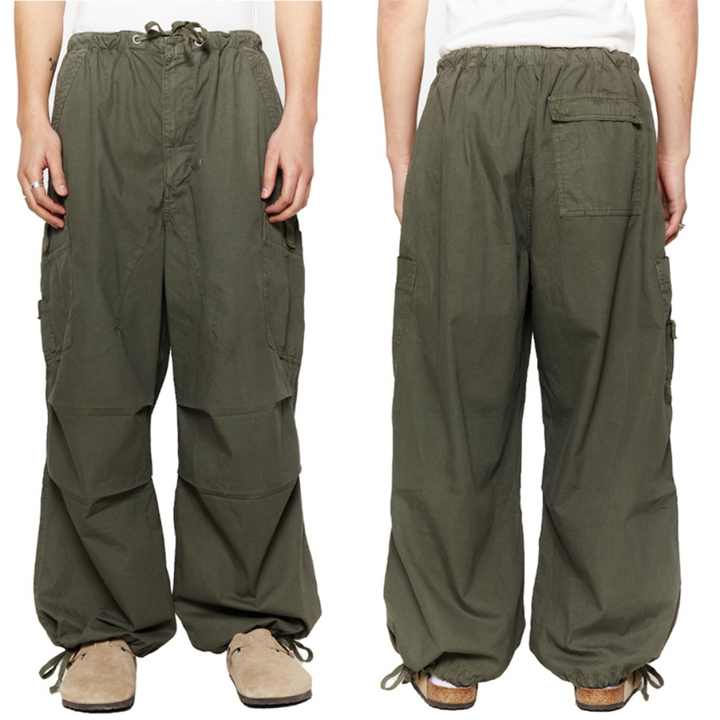 กางเกงคาร์โก้ทรงพาราชูทขาจั๊มพ์ผ้าฝ้ายสีกากีแบบมีจีบเข่า กระดุมหกช่อง แฟชั่นขายส่งสำหรับผู้ชาย
