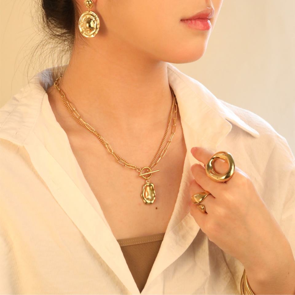 แหวนแฟชั่นขายส่ง กันน้ำ ดีไซน์มินิมอล หลายสไตล์ แหวนหนา ประดับเพชร สำหรับผู้หญิง ชุบทอง 18k วัสดุสแตนเลส