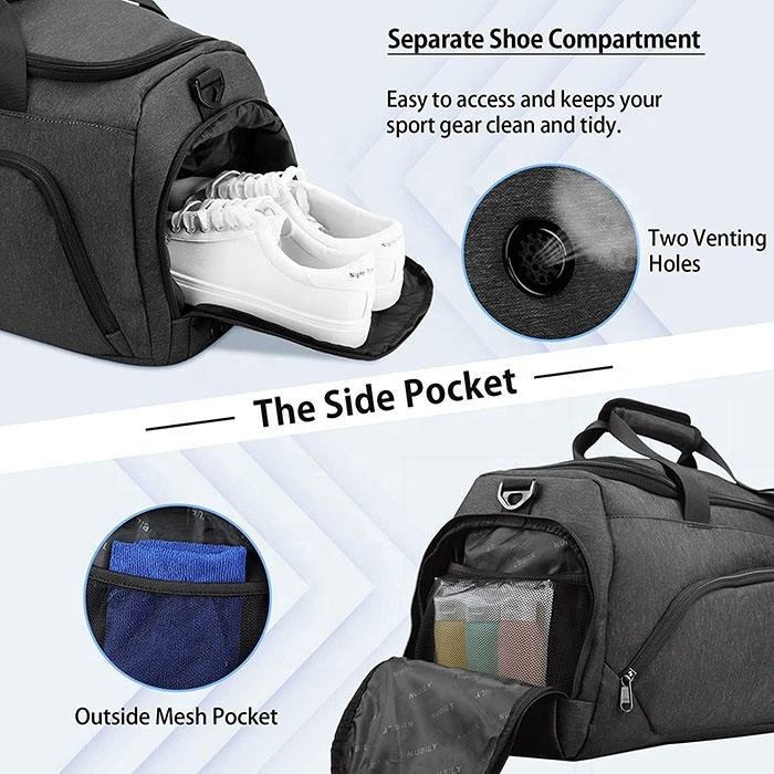 กระเป๋าเล่นกีฬากันน้ำแฟชั่นกระเป๋าเล่นกีฬาโพลีเอสเตอร์มีช่องใส่รองเท้า