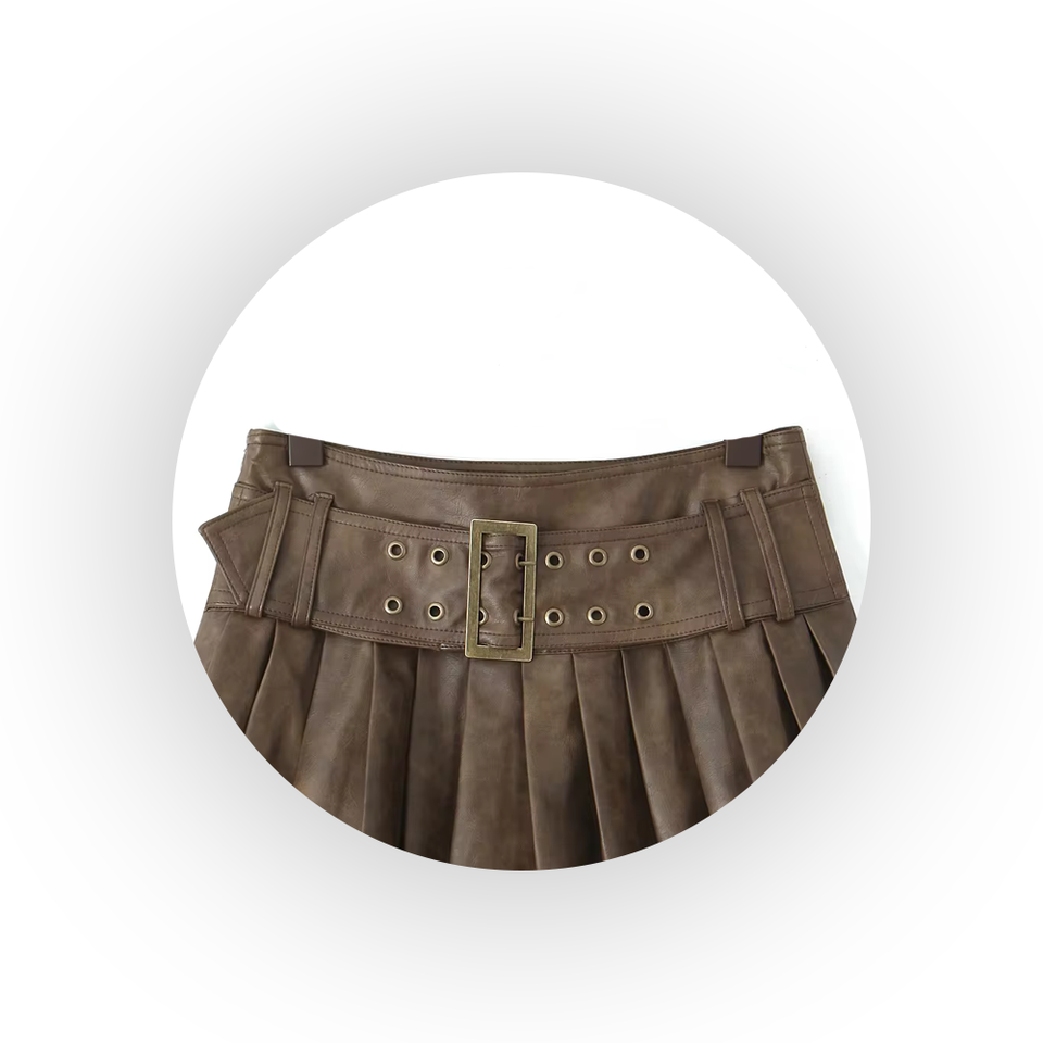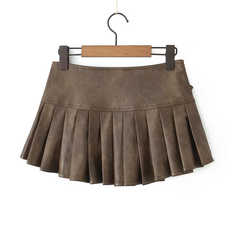 กระโปรงมินิหนังเทียมพร้อมฝาสำหรับเย็บของผู้หญิง