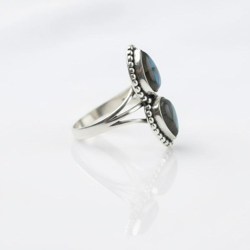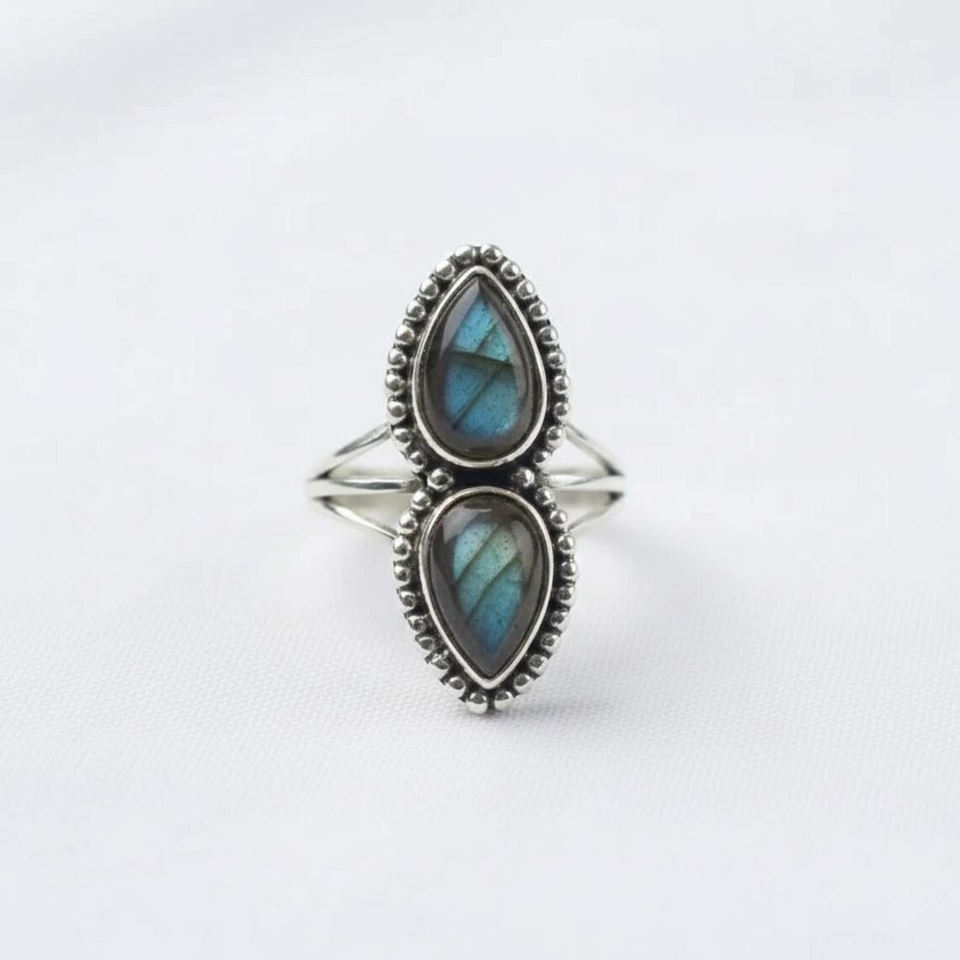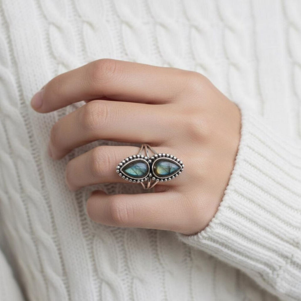 แหวนลาบราโดไรต์ธรรมชาติสวยงาม แฟชั่นขายส่ง เงินแท้ 925 สไตล์โบฮีเมียน งานแฮนด์เมด สำหรับงานแต่งงาน